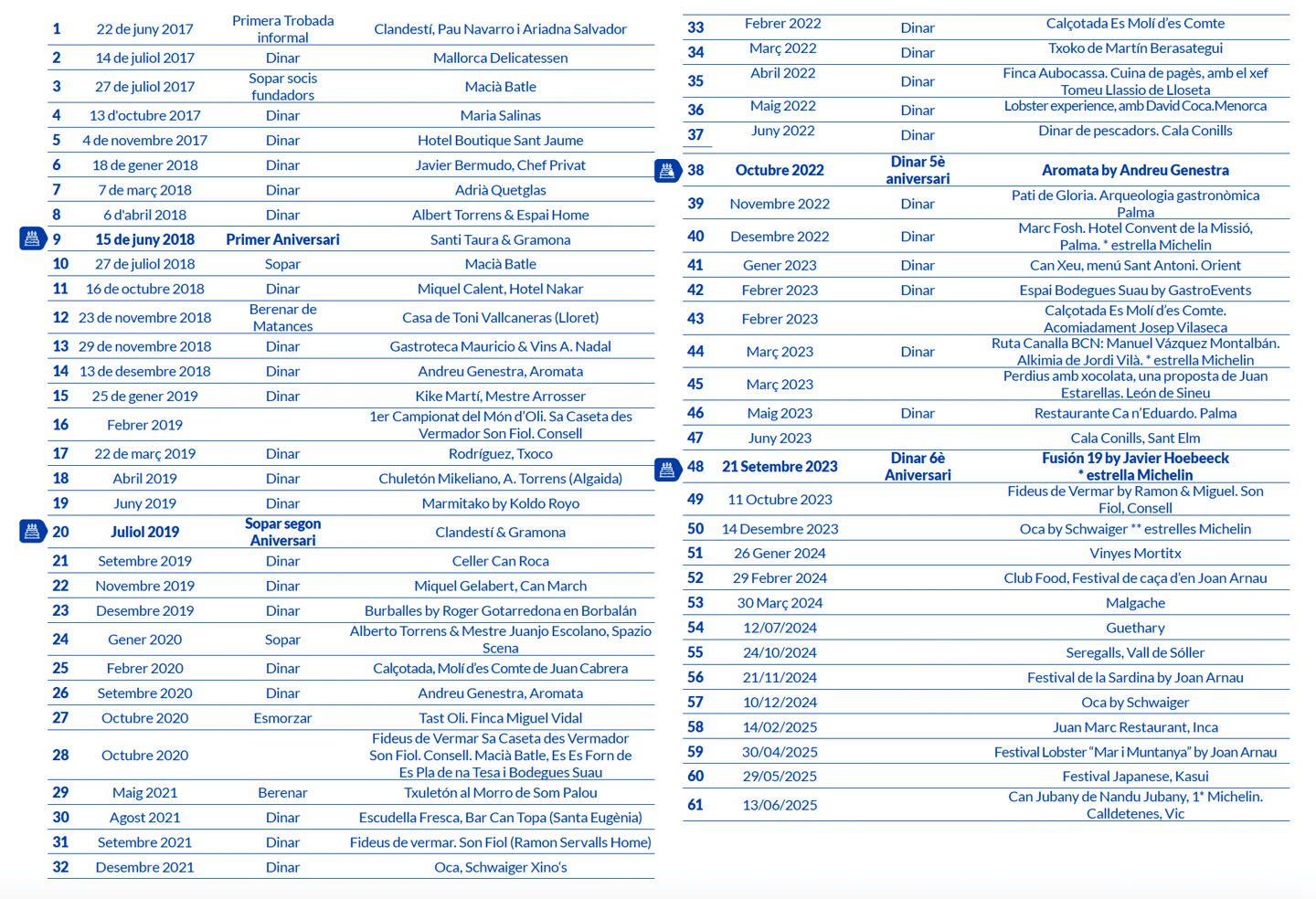 Descubreix les nostres trobades , recomanacions i experiències culinarias a Mallorca i mes enllà.